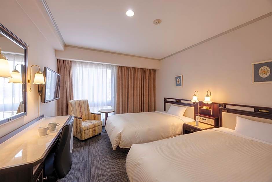 This air-conditioned room features two small double beds (47 in wide), a flat-screen TV, electric kettle, air purifier and humidifier. The bathroom features a bathtub.